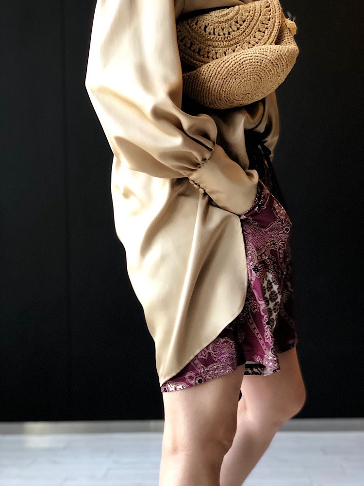 着こなしポイント:あえて、ワイドなパンツやロングのスカートで合わすのも今年色になります