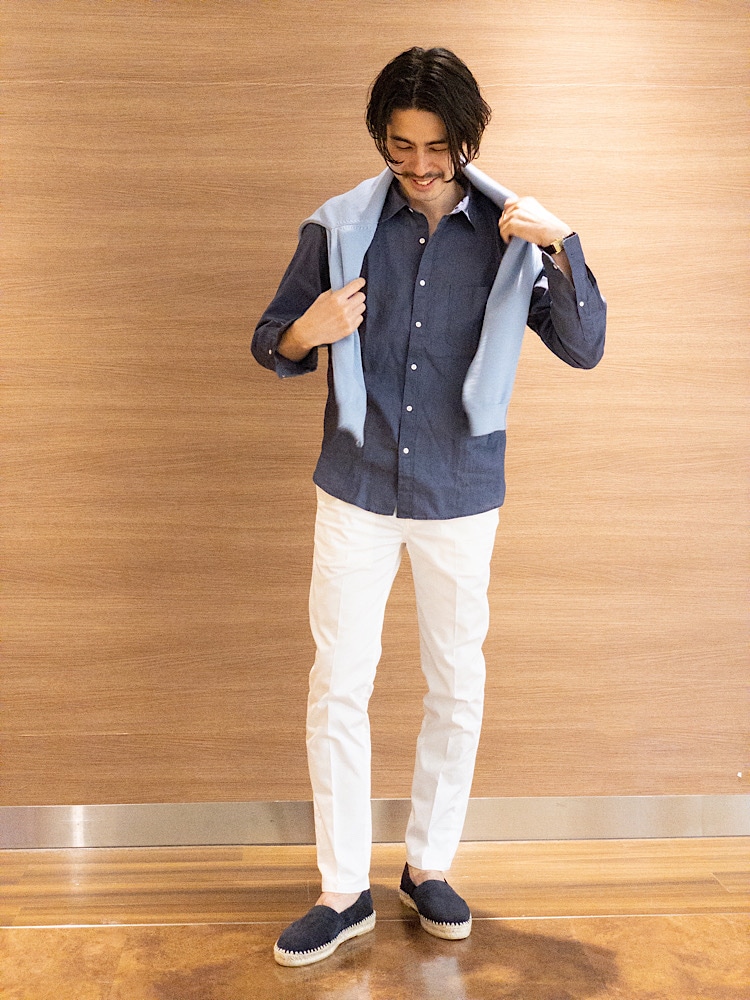 ネイビー×ホワイトで涼しげな大人のリラックスコーディネイト。