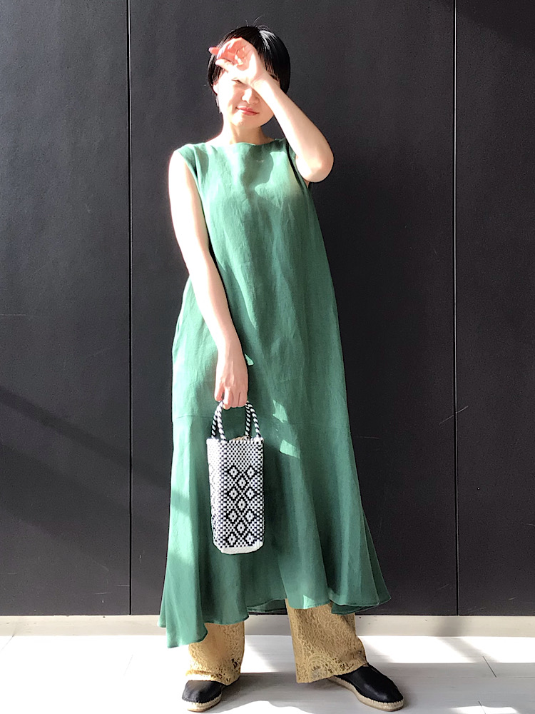 生地がたっぷりと使われていて、カラーも夏場のお出かけにぴったりなワンピースです。