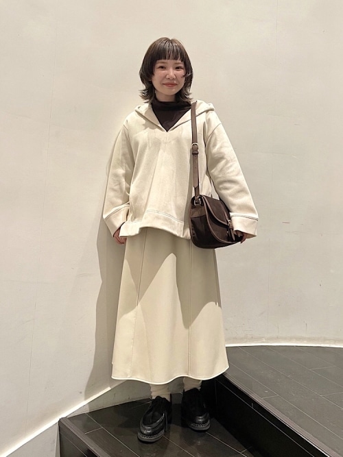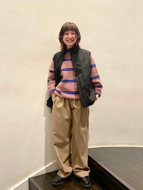 素材感・着心地:ウエストあたりは細めでハイウエストなので脚長効果のあるシルエットです。もも周りはゆとりがあり体型を気にせず履きやすかったです。