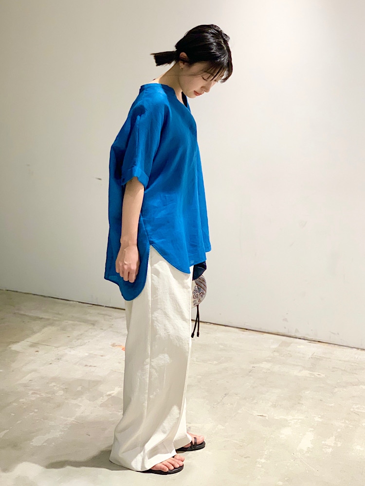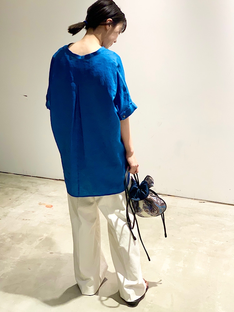 さわやかなターコイズ系ブルーのシャツを白ワイドでルーズに仕上げました!!