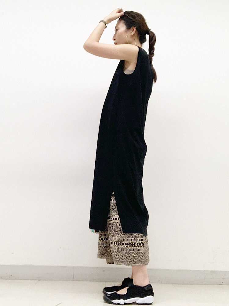 素材感・着心地:体のラインが出ない。シワになりにくい素材。