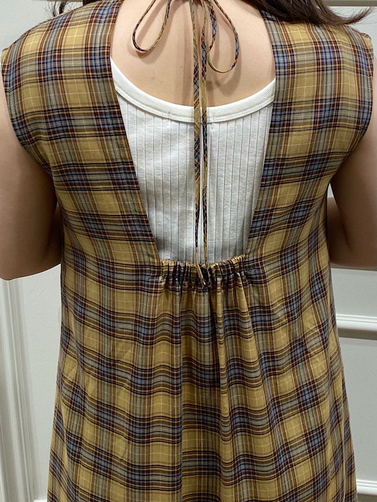 サイズ感:身幅ゆったりです。後ろの紐で首回りのサイズ感調節できます。