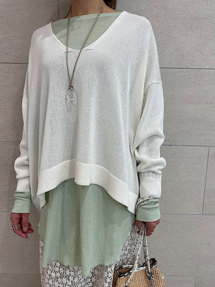 【着心地】非常に軽く、レイヤードスタイルでも清涼感がありサラッとしています。