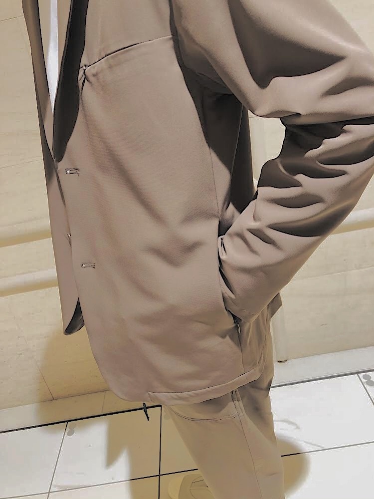 素材感:ジャケット同様ストレッチも効いているのと、非常に軽量です。接触冷感もあるので、涼しい素材です。