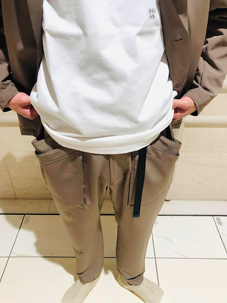 サイズ感:腰から腿周りにかけてはゆったりしたシルエットだが、生地に落ち感のある柔らかいシルエットなのでストンとスッキリ見えます。丈感もジャストレングス。