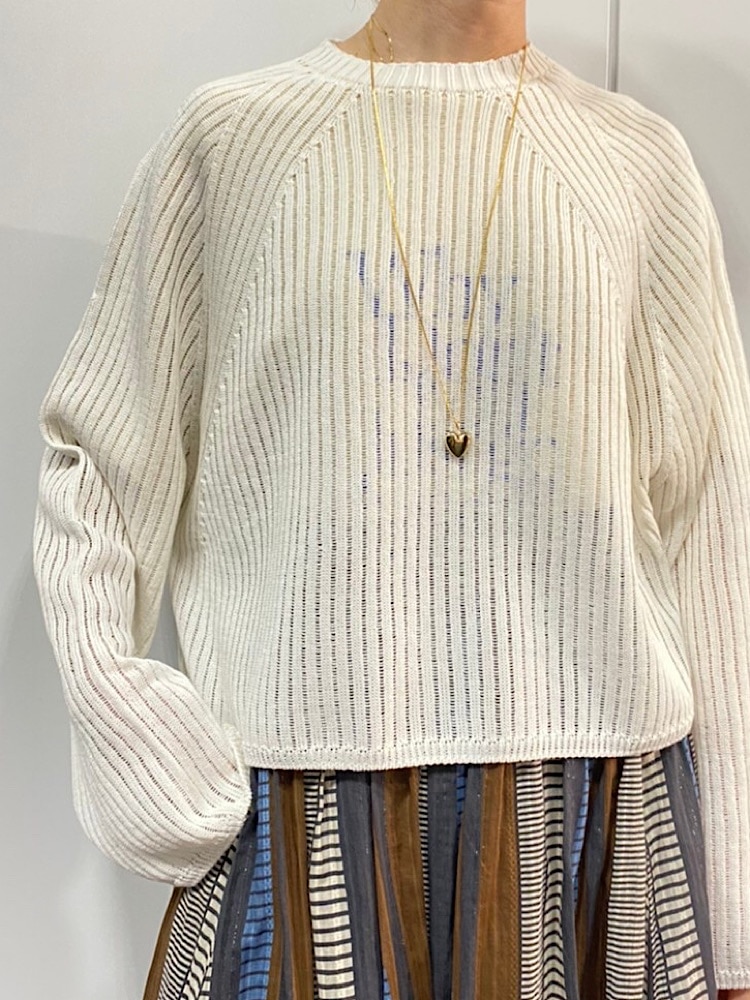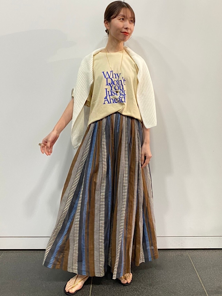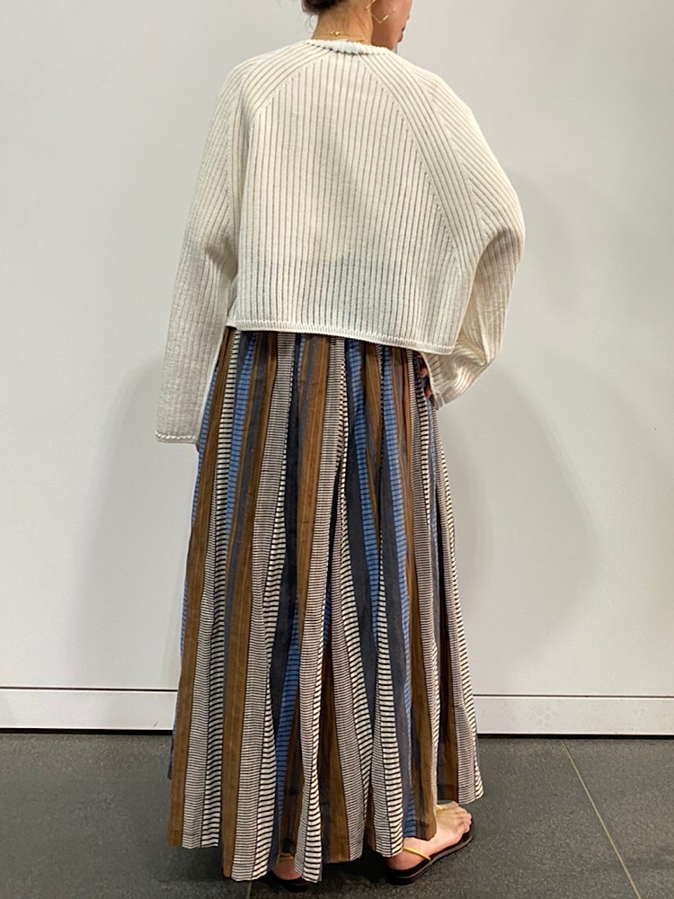 着回しのきくwai+のショートニットはロングスカートとの相性抜群。