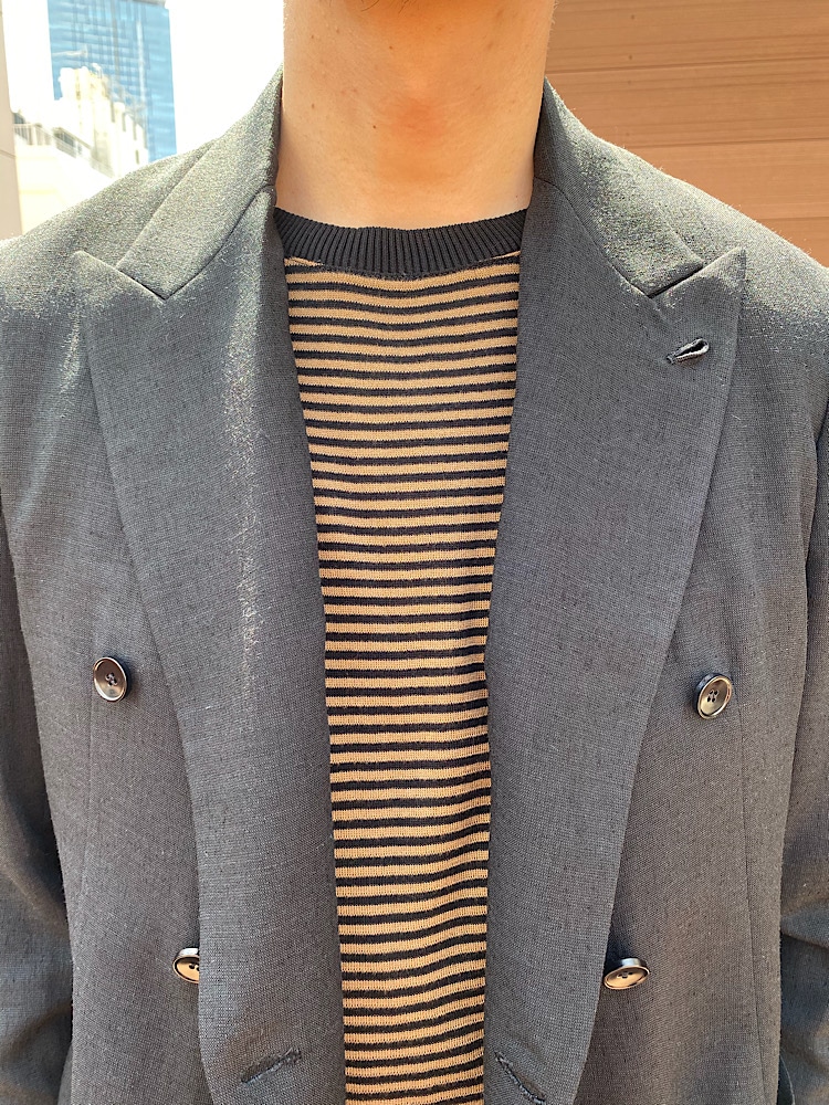 【素材感・着心地】リネン混のドライな素材感で裏地もなく軽いので着疲れせず着て頂けます。