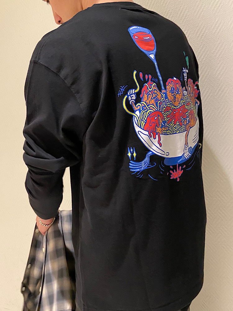 着心地:ゆったりとしていてバックプリントにユーモアなグラフィックで存在感があり
