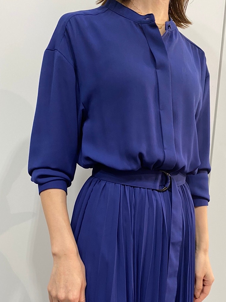素材感・着心地:サラッとしたポリエステルで程よい張りと落ち感。肌離れがいいので心地良く着て頂けます。