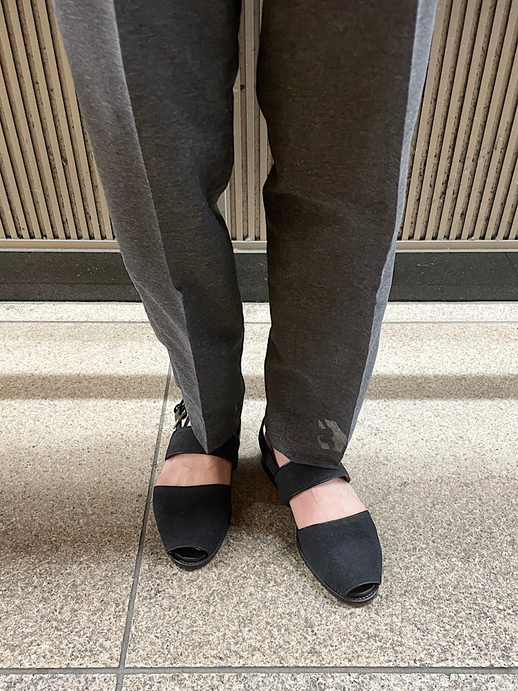 ヒップ付近にゆとりがあり、テーパードが効いています。