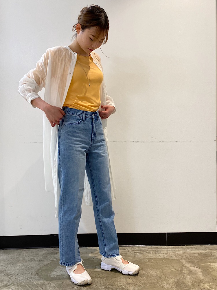 【着用レビュー 】 着用アイテム:デニム 身長:164cm / 普段サイズ:36/ 着用サイズ:S サイズ感:やや細身 素材感:伸縮性無し 着心地:薄手で軽めなので履きやすい