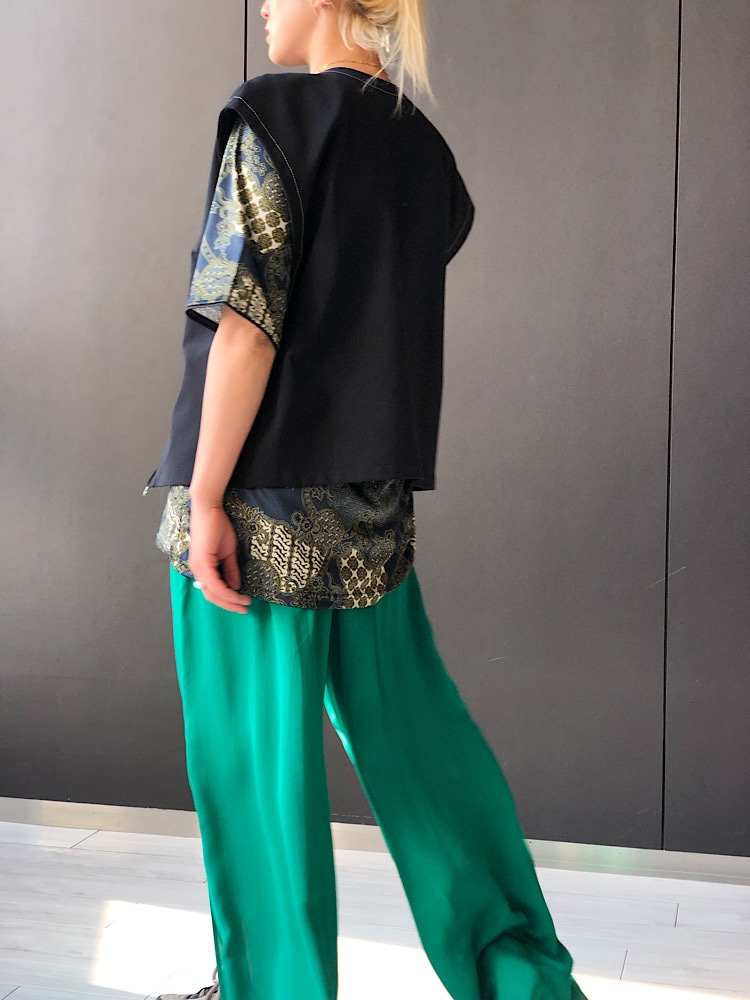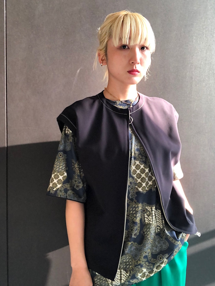 着こなしポイント:ベスト風に着る事も出来、お持ちのお洋服に+αすると、いっきに今の気分になります