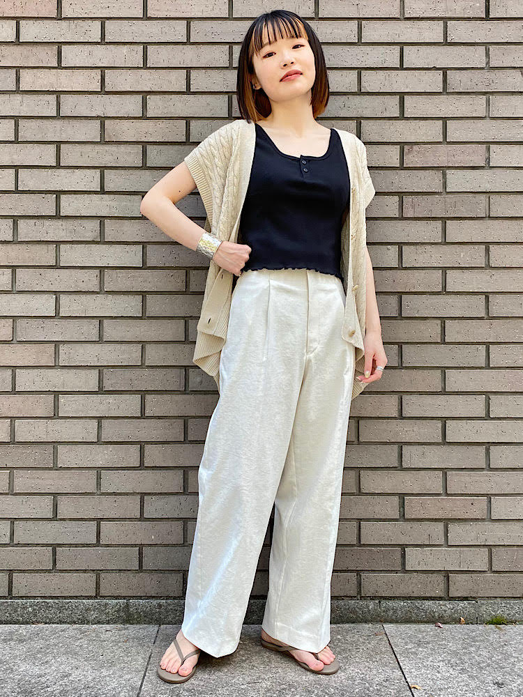 素材感・着心地:少し麻が入っておりさらりとした生地感