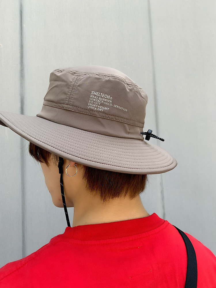 素材感:遮熱・UVカット・吸水速乾・接触冷感・軽量感等、様々な機能を備えた高機能素材、SHELTECHを使用。