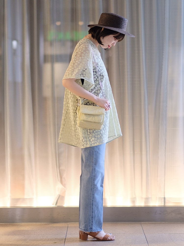 着用のバッククロスキャミが今年らしく、相性抜群です◎
