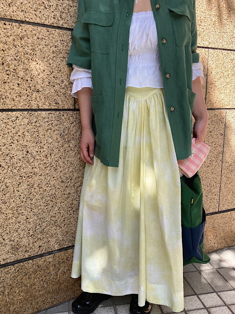 ペールトーンのタイダイ柄なので取り入れて頂きやすく、夏におすすめです。