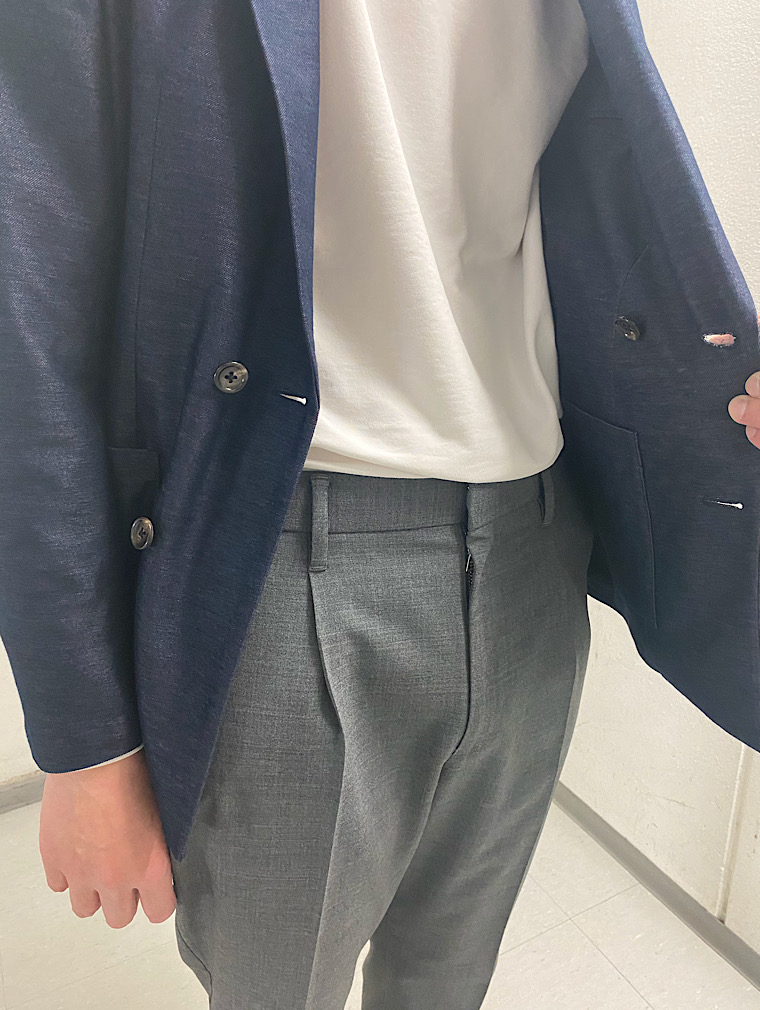 素材感;サラッとしたサマーウールで肌触りが良い。