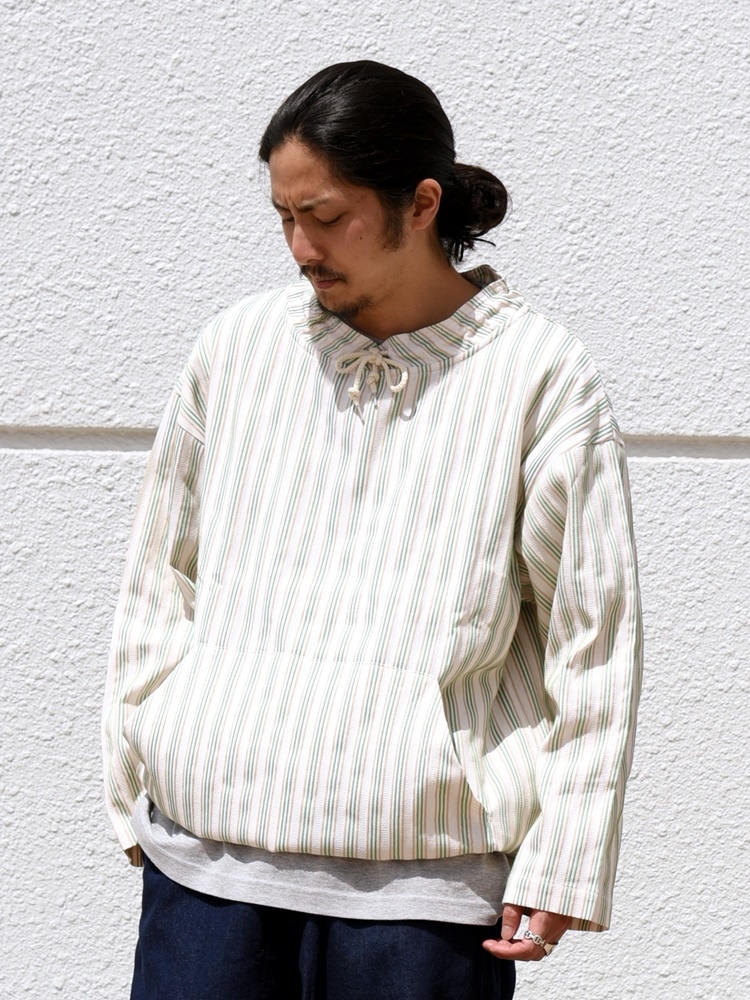 素材感:ヘ凹凸が特徴的なストライプ柄のコットン/リネン生地を使用し、ドライ感のある素材。