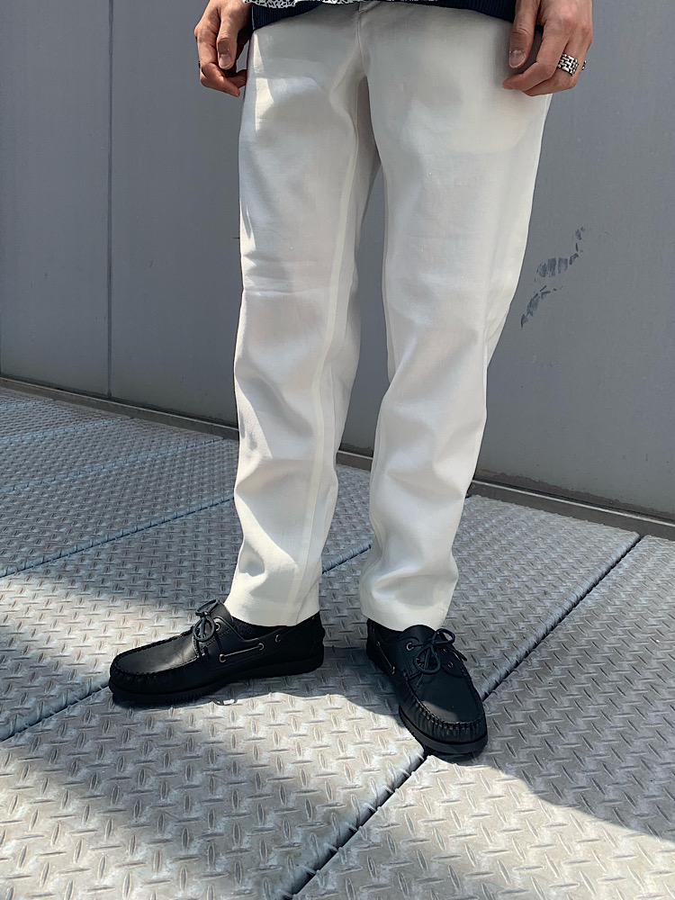 素材感:リネン特有の光沢感、柔らかさに優れる"SAFILIN社"の素材に加え、機能糸"SOLOTEX(R)"をブレンドした別注素材により、高いストレッチ性を確保。