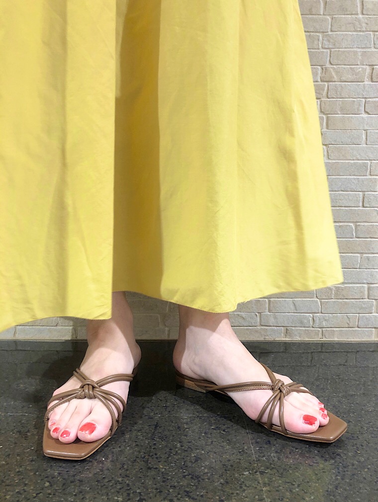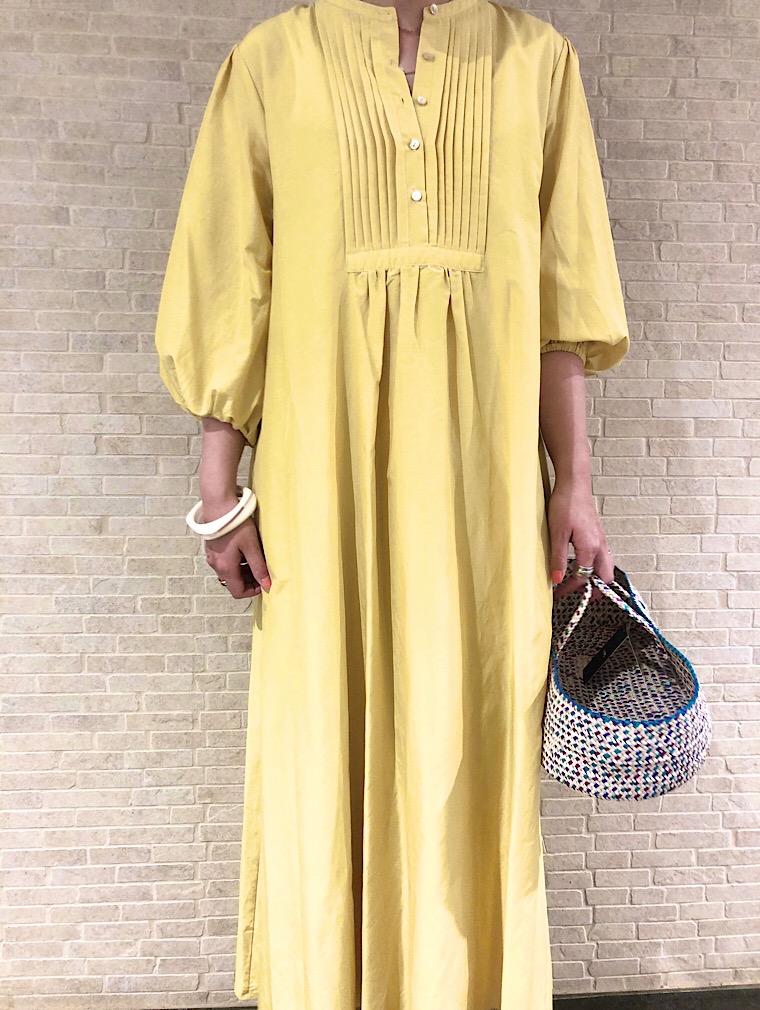 華やかなイエローのワンピースは、一枚で主役になります!小物合わせで、キレイ目にもカジュアルにもアレンジしていただけます!