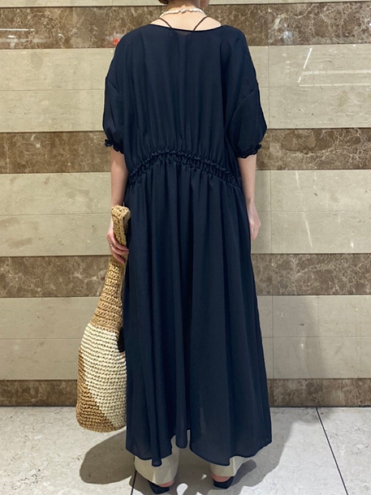 たっぷりのギャザーがポイントのワンピースは