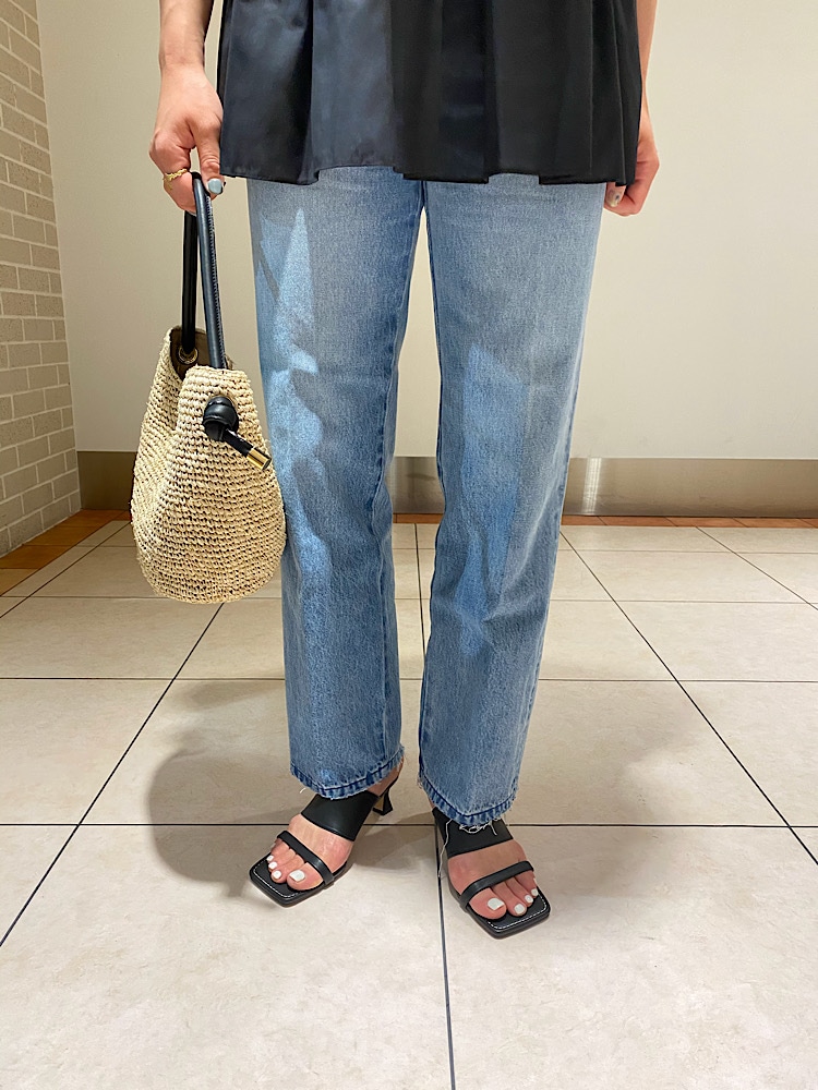 ストレッチ感はないが、ハイウエストかつセンタープレスが入っており脚長効果あり。