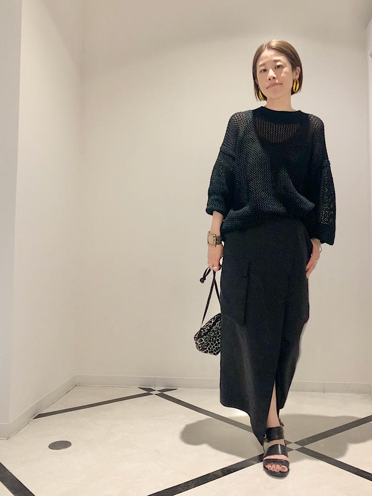 【素材感・着心地】麻に似た風合いだが、シャリ感あり。メッシュで風通しよく、夏はタンクトップ合わせでOK。気温の低いときは、長袖Tシャツやブラウスのレイヤードがおすすめ。