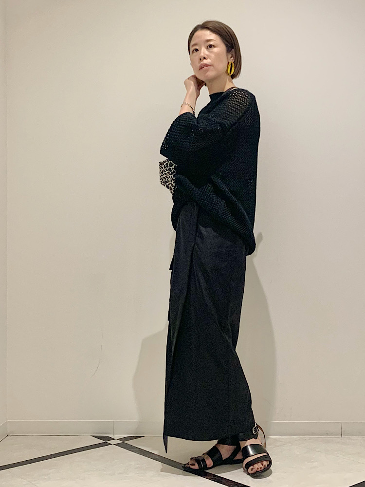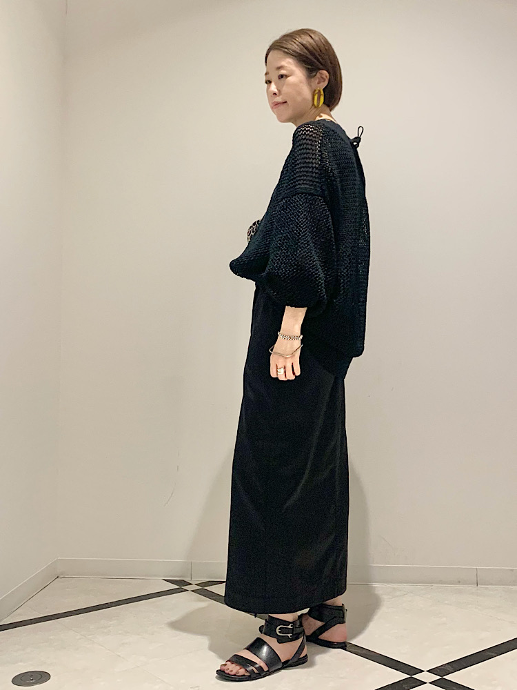【素材感・着心地】しっかりとした素材だが動きやすい。スリットは深めで足さばき良く、いやらしくないバランス。