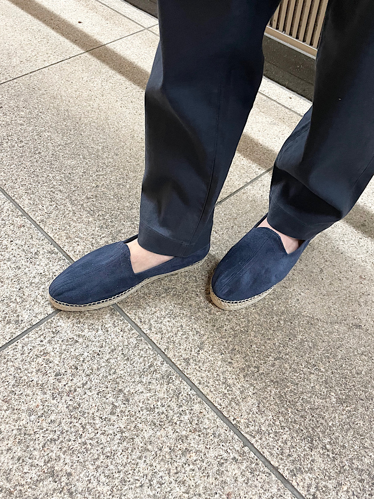 少しゆったりめ。テーパードが効いているので上品なシルエット
