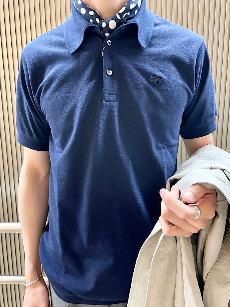 Sサイズでジャストです。Mだと首元が緩かったです。身幅にややゆとりがあり、少し着丈が長めでクラシックな印象でかっこいいです。襟がニット素材で上品です。生地と同色でやや小ぶりに仕上げたラコステロゴも小洒落ていていいと思います。ジャケットのインナーに使用しても問題ないドレス感だと思います。