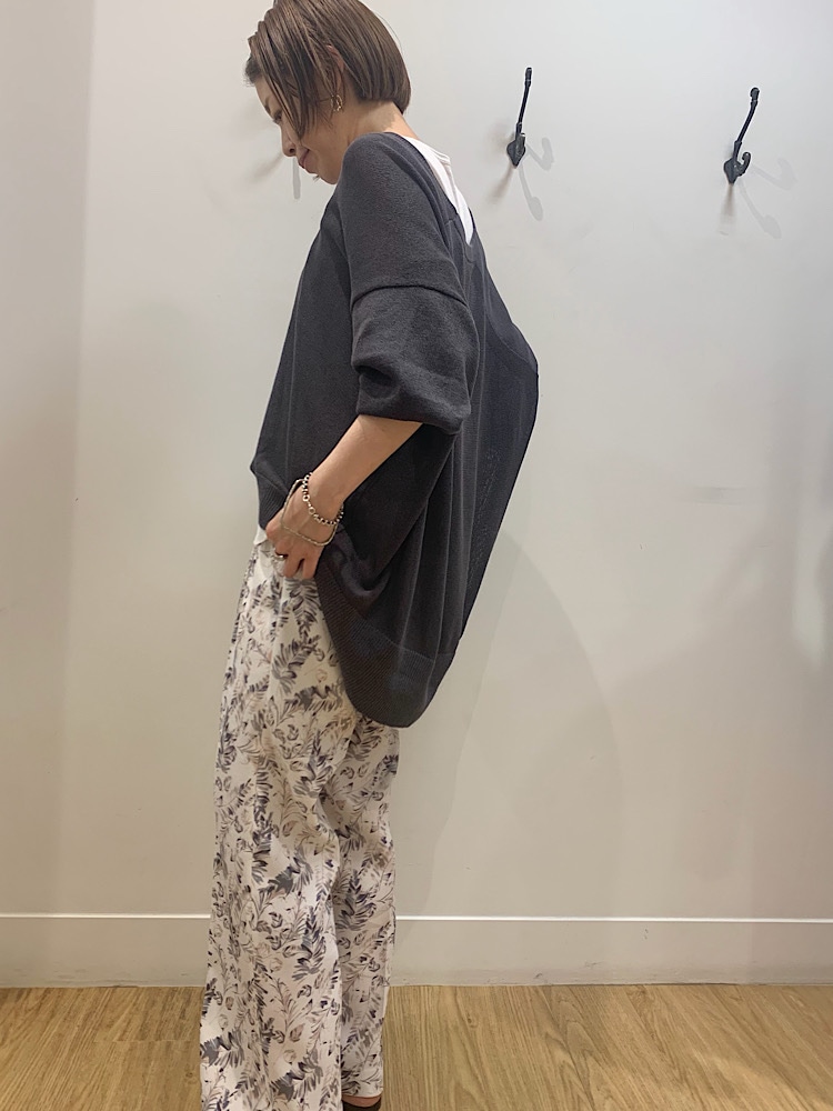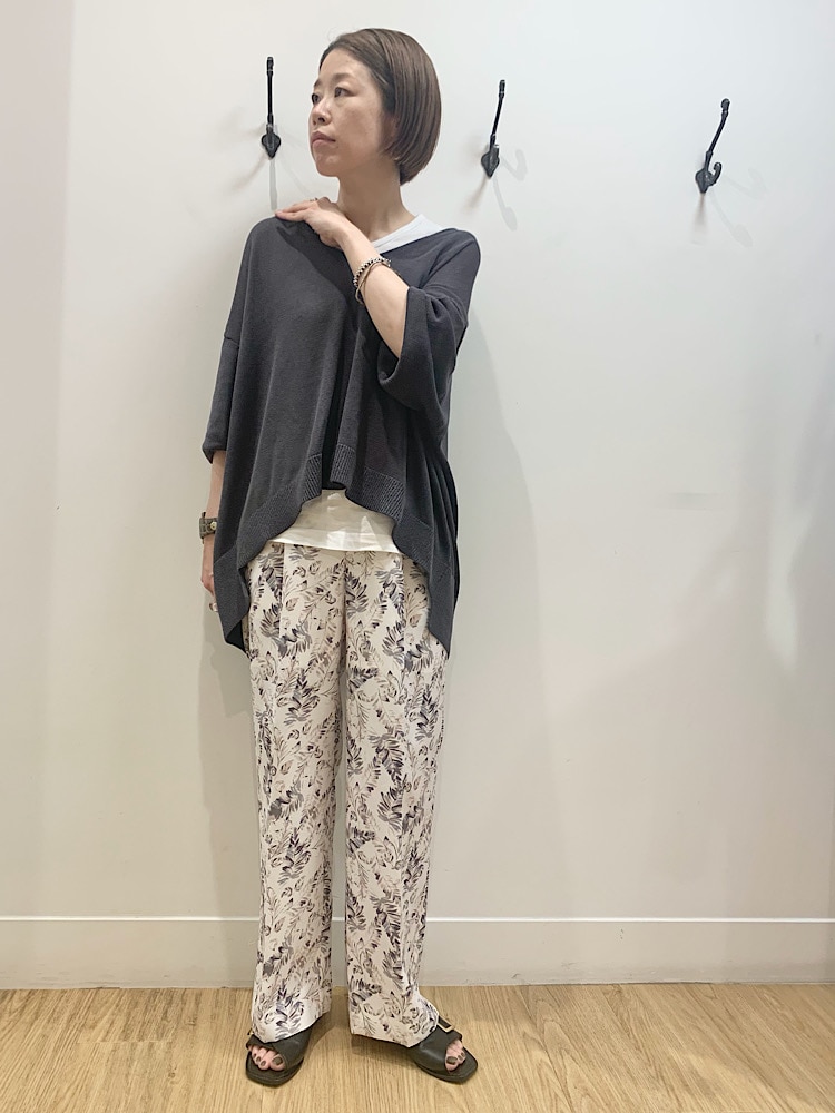 柄のボトムスを少し綺麗目に、カジュアル過ぎない着こなしに。
