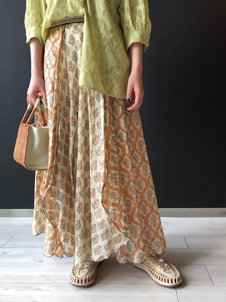 ・ベージュとオレンジの色合いが秋口まで着用できそうです