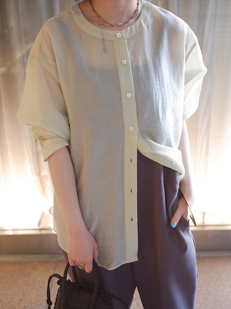 付け襟は外せるのでノーカラーのシンプルなシャツとしても、