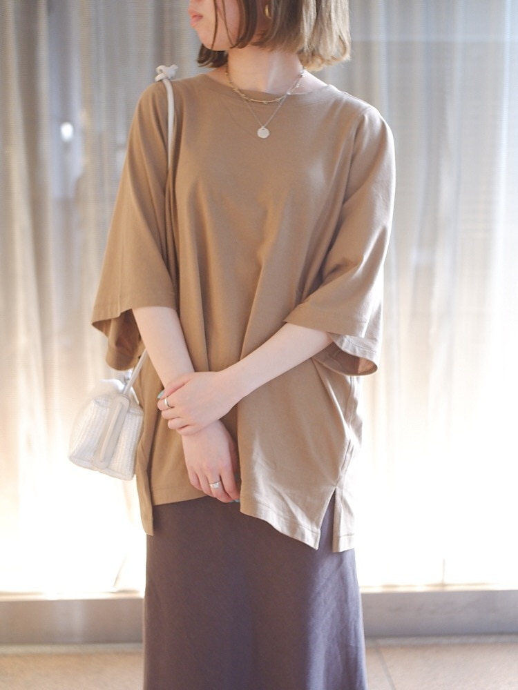 透け感はなく、夏に一枚で着映えするTシャツです。