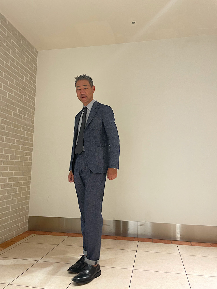 適度にタイト感の有る細身のシルエットの為 サイズアップしました。