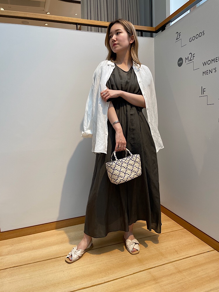 素材感:麻素材なのでさらっとしていて真夏も着用しやすいです。