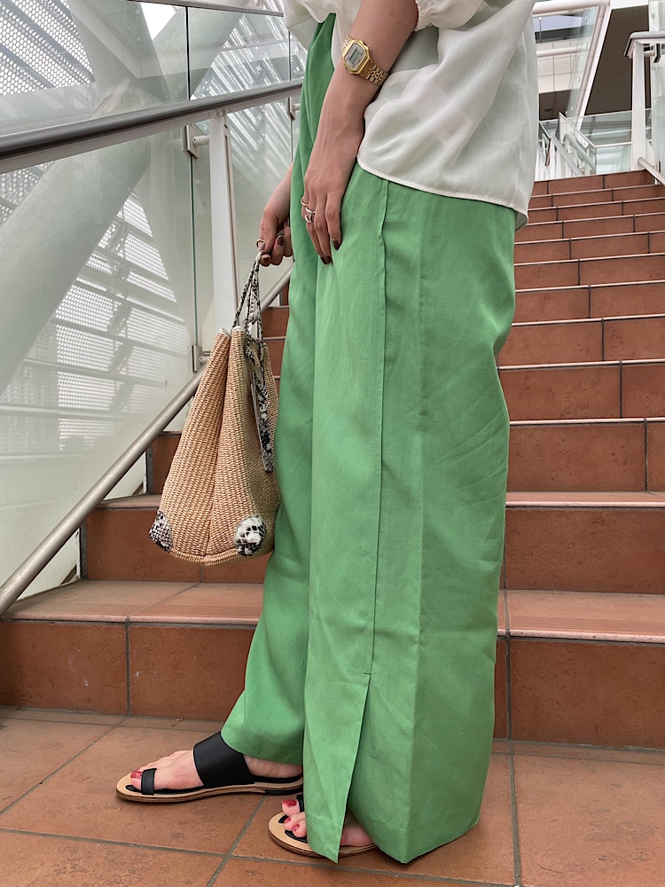 グリーンを主役にした大人カジュアルコーデ。
