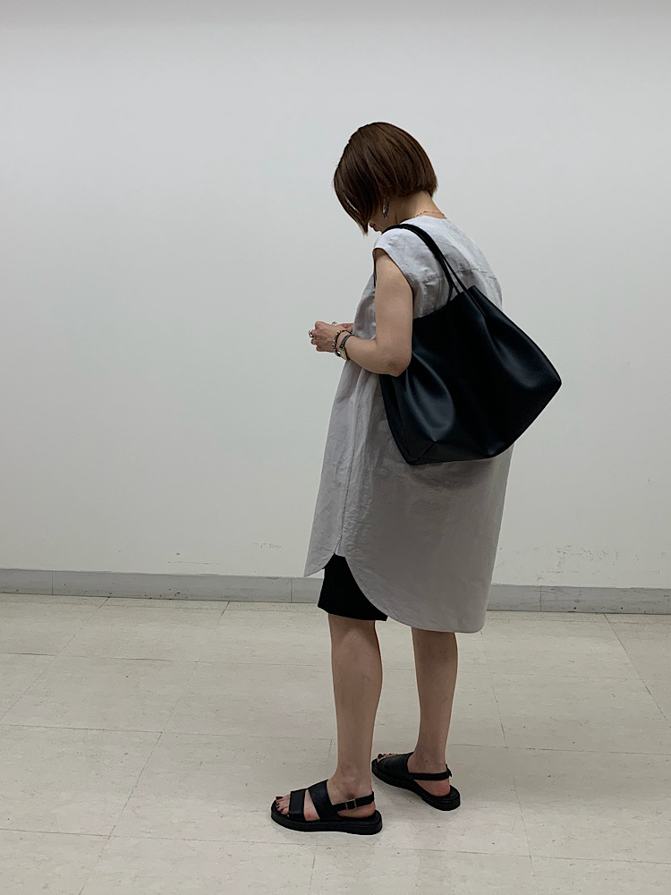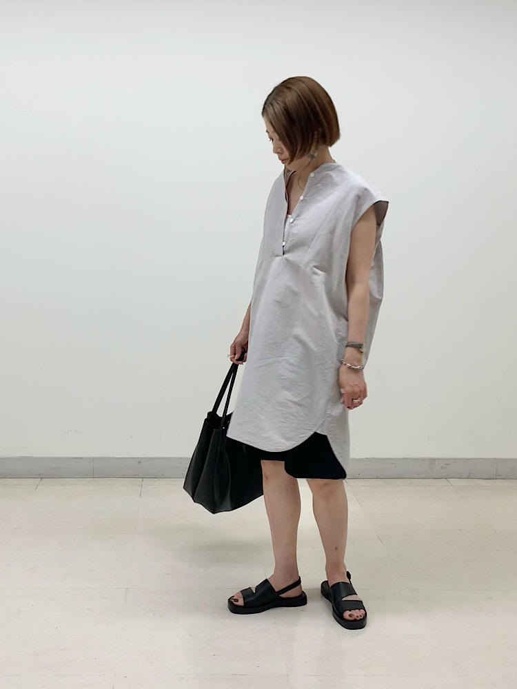 【サイズ感】ゆったりしたオーバーサイズで体が泳ぐシルエット。小柄な方ならワンピースで着られるくらい長めの丈。