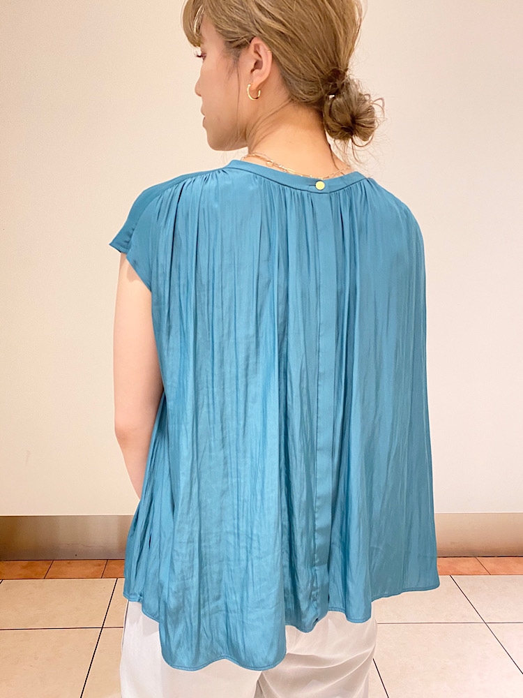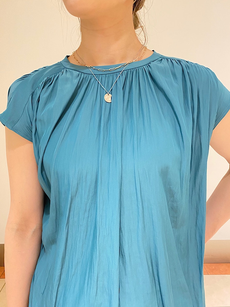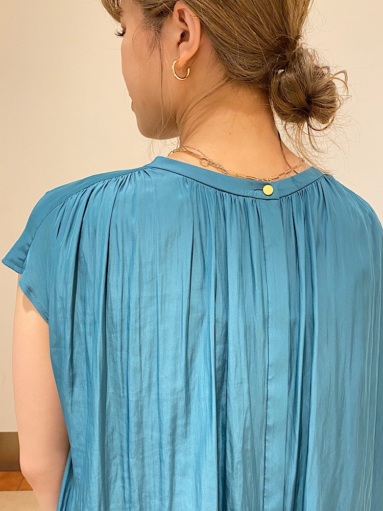 フレンチスリーブが肩周りを気にすることなく着用できる。