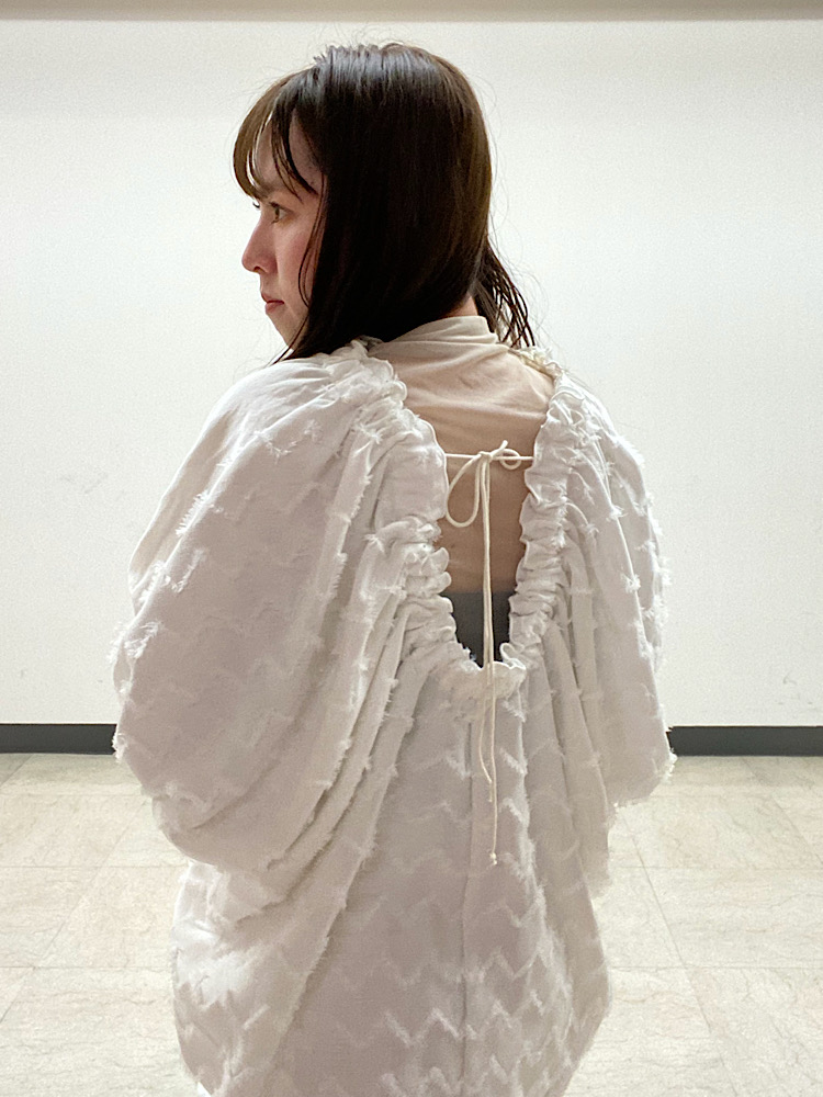サイズ感:首元、袖口がゴムなのでどんな方にも着て頂きやすい。ゆったりとしたシルエット。