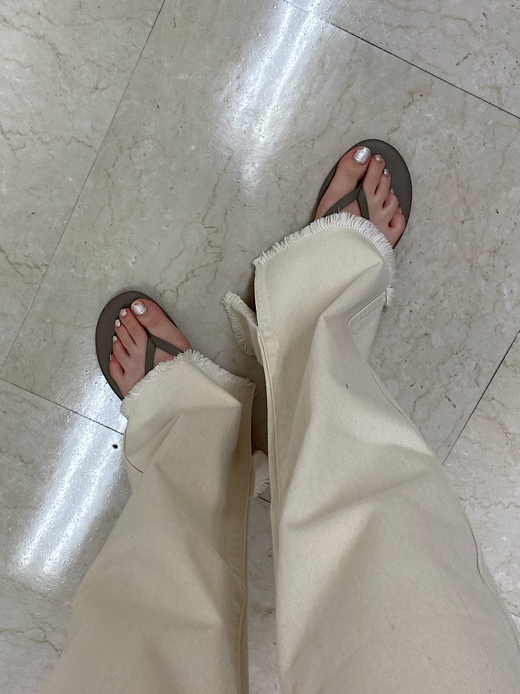 素材感・着心地:柔らかい生地なので履きやすい。スリットがあるので抜け感がある。