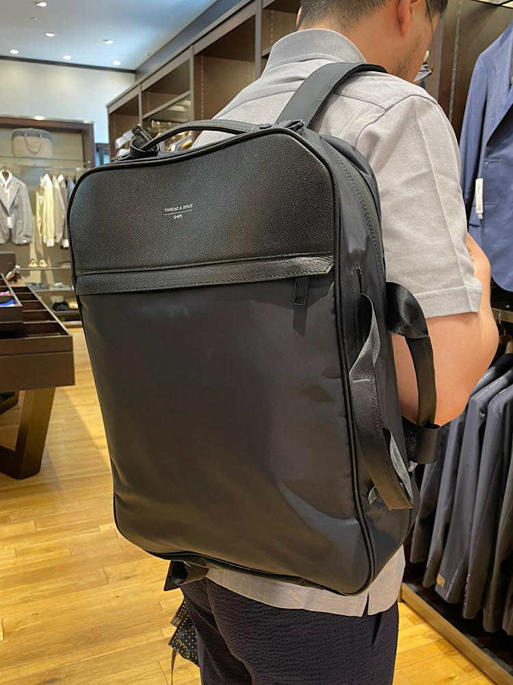 梅雨時期におススメのクールビズスタイルになります。BAGやSHOESは撥水に特化した素材を使用しております。