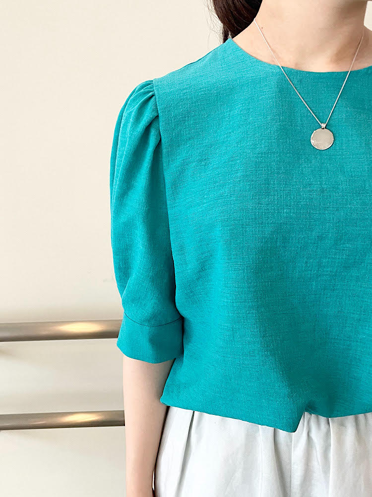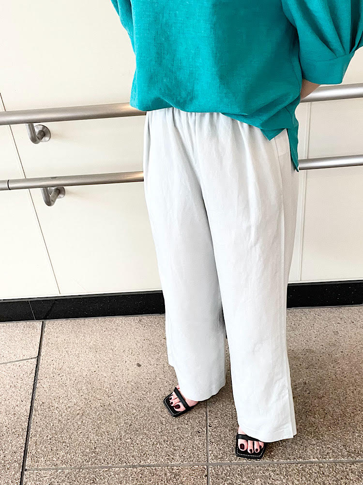 凹凸のあるスラブ調で麻混なので清涼感があり、着ていても涼しいです。
