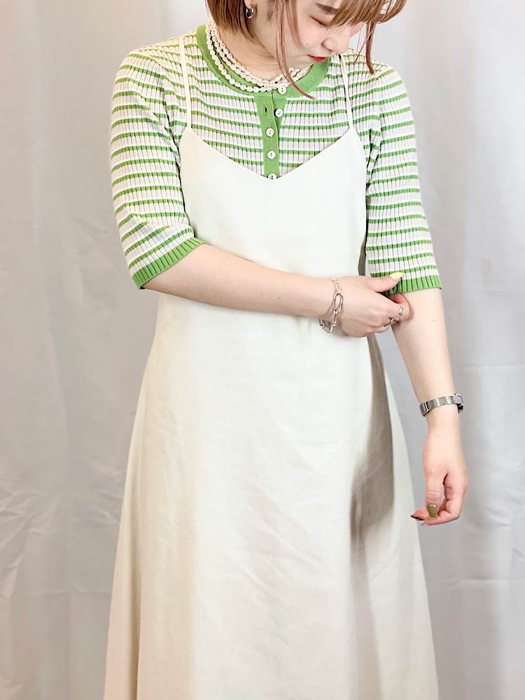 商品紹介:素材がコットンシルクのため、カジュアル過ぎず少しキレイ目なボトムとも相性がいいです。リブが伸びるので楽に着ていただけます。首元がクルーネックの為、上から羽織りなど羽織ってインナーとしてもお使いいただけます。