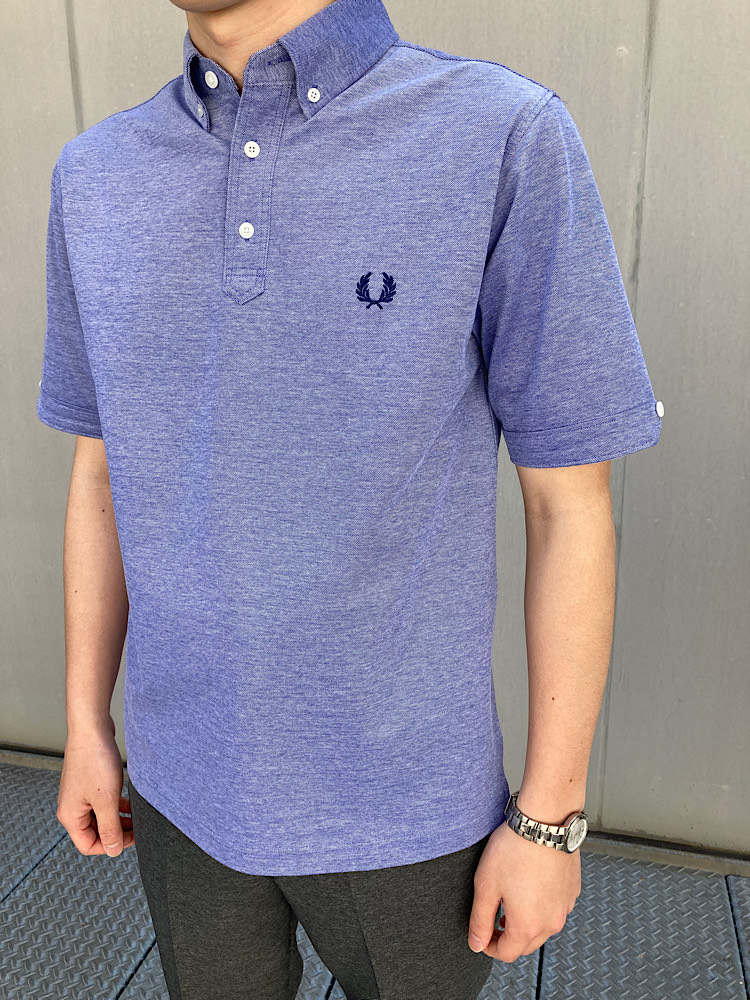 素材感・着心地:鹿の子を使用し、生地に光沢感がある為、上品な印象。また袖にスリットとボタンがありアクセントに。ビジカジスタイルやクールビズスタイルにも最適。