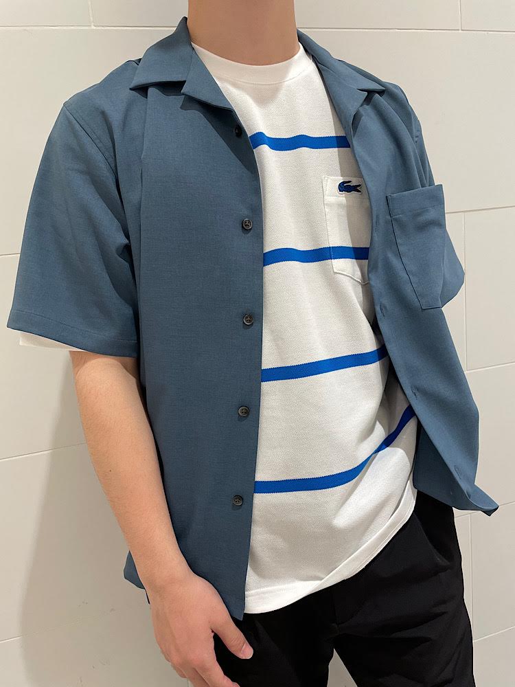 【素材感・着心地】Reflaxを使用したオープンカラーシャツ。シワになりにくく、毛羽も出にくい。トレンド感のあるゆったりめなオープンカラーなので、どんなスタイリングにも使いやすい。