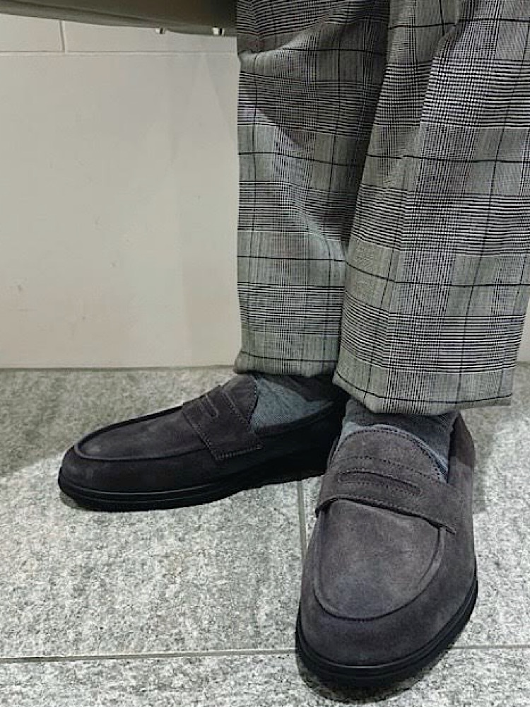【素材感・着心地】撥水処理を施したスエードです。ラバーソールの為、スニーカーのような履き心地です。
