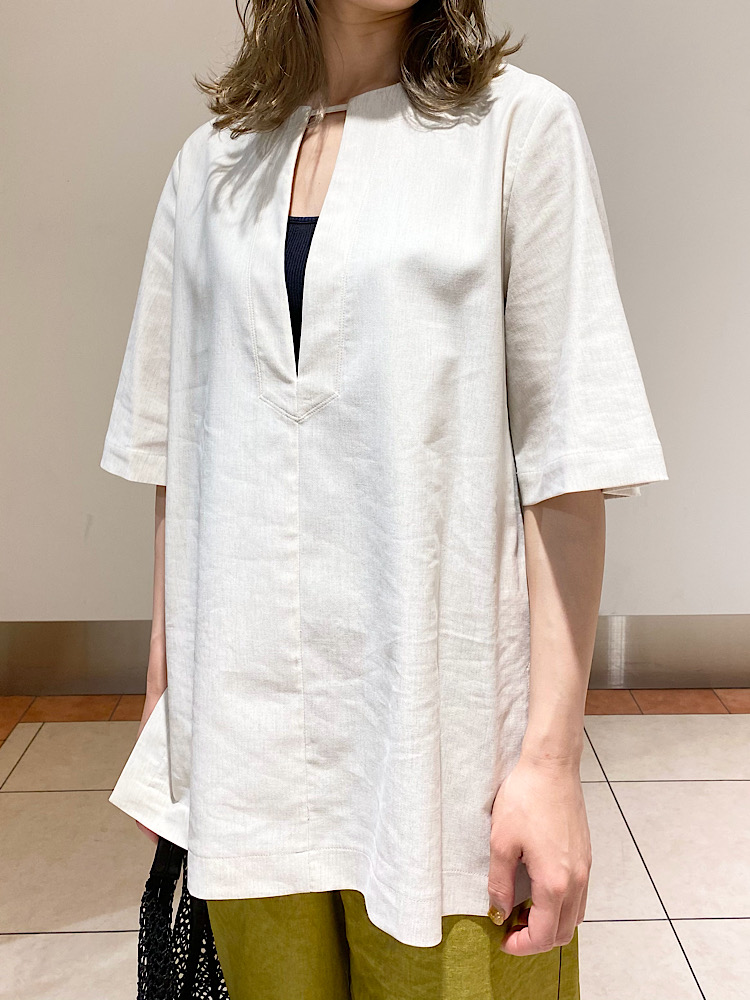 首元が程よい肌見せになり、コーデのアクセントになる。