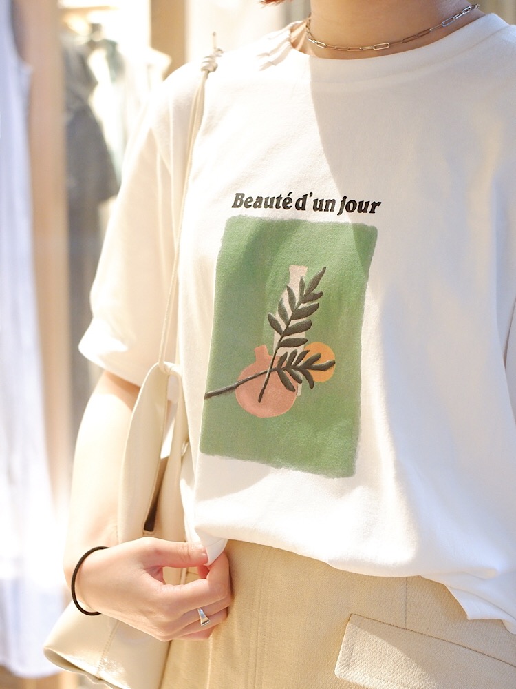 プリントがフロントにデザインされているので、インナーとしても映える一枚です!